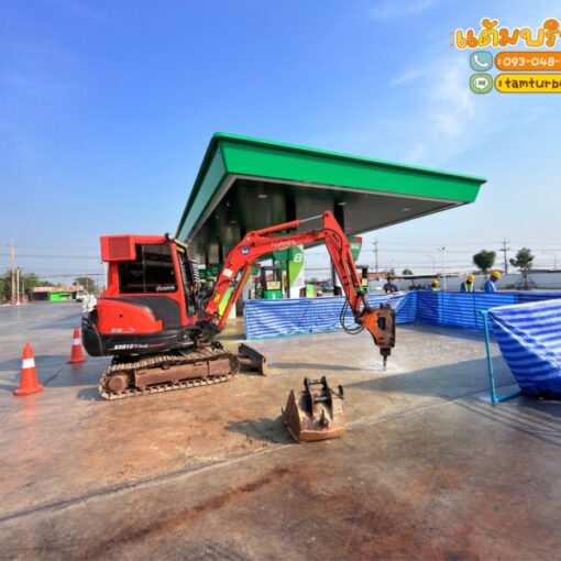 แม็คโครซ่อมท่อ ถังแซท อมตะชลบุรี พร้อมใบเซอร์ ใบจป2